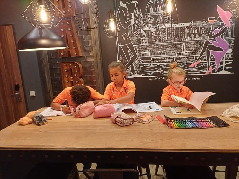 Als afsluiting hebben we in de lobby van het hotel nog even samen met de andere ouders en kinderen wat gedronken. De jongste kinderen zaten gezellig met elkaar te kleuren en genoten van warme chocolademelk.
