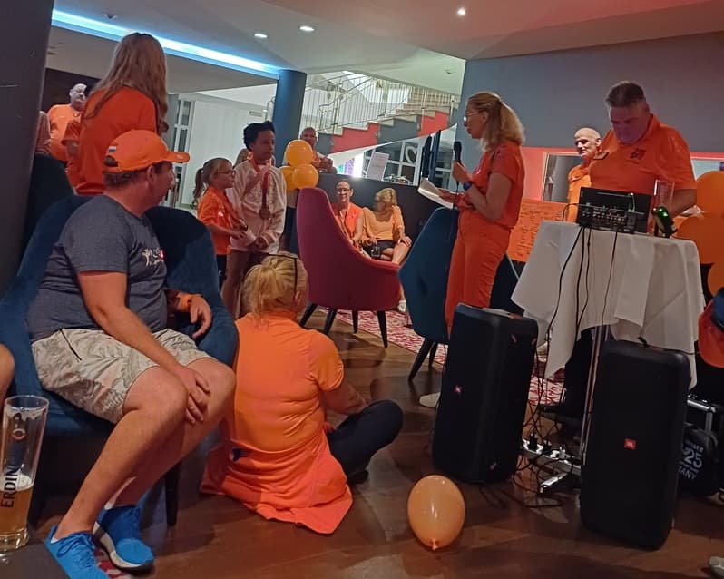 ’s Avonds hebben we gezellig pizza gegeten en afscheid genomen van opa en oma, die morgen vroeg weer naar huis gaan. Daarna zijn wij met de medailles naar het Holland House gegaan om daar een feestje te vieren. 🎉