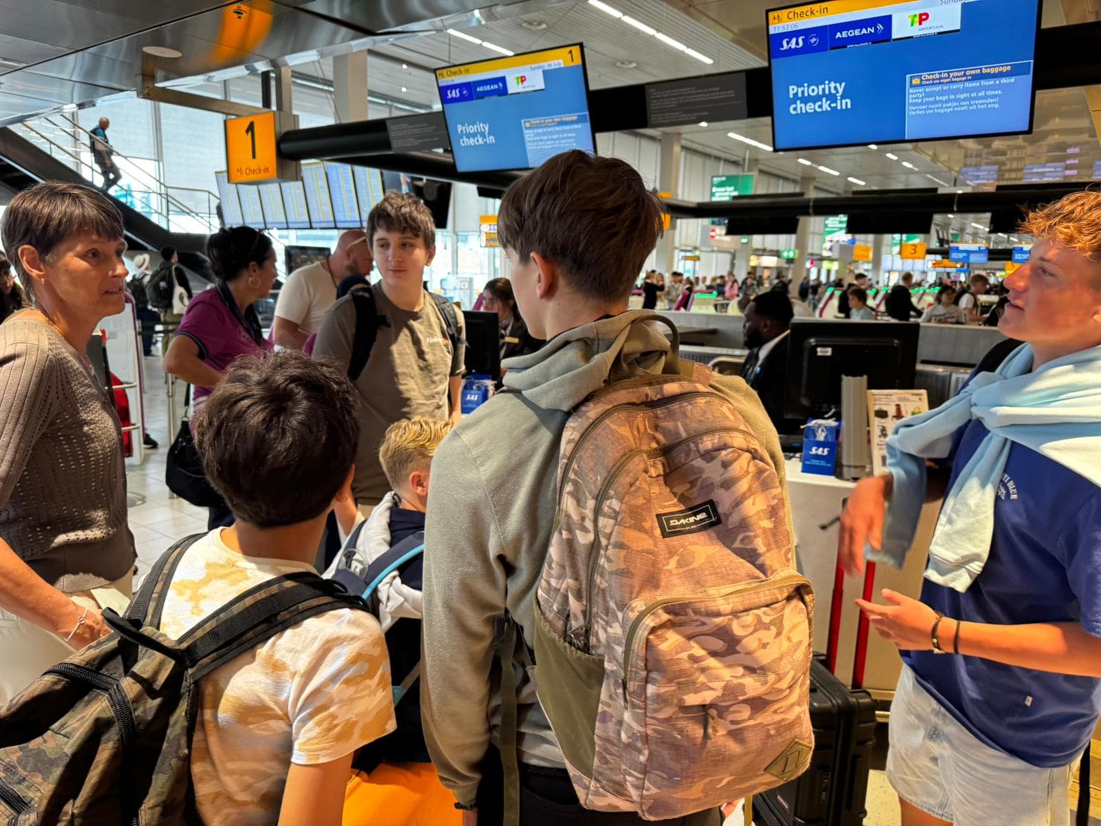 Eindelijk was de dag daar! Onze KREW week naar Obidos in Portugal. Iedereen was keurig op tijd op Schiphol. Na een laatste knuffel lieten we de ouders achter en gingen we op weg naar de incheckbalie. Er was begeleiding geregeld waardoor we met voorrang overal snel doorheen konden.